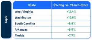 As for where these trends are showing the most impact, the report highlighted the top 5 states for dollar growth in Q1 2023: