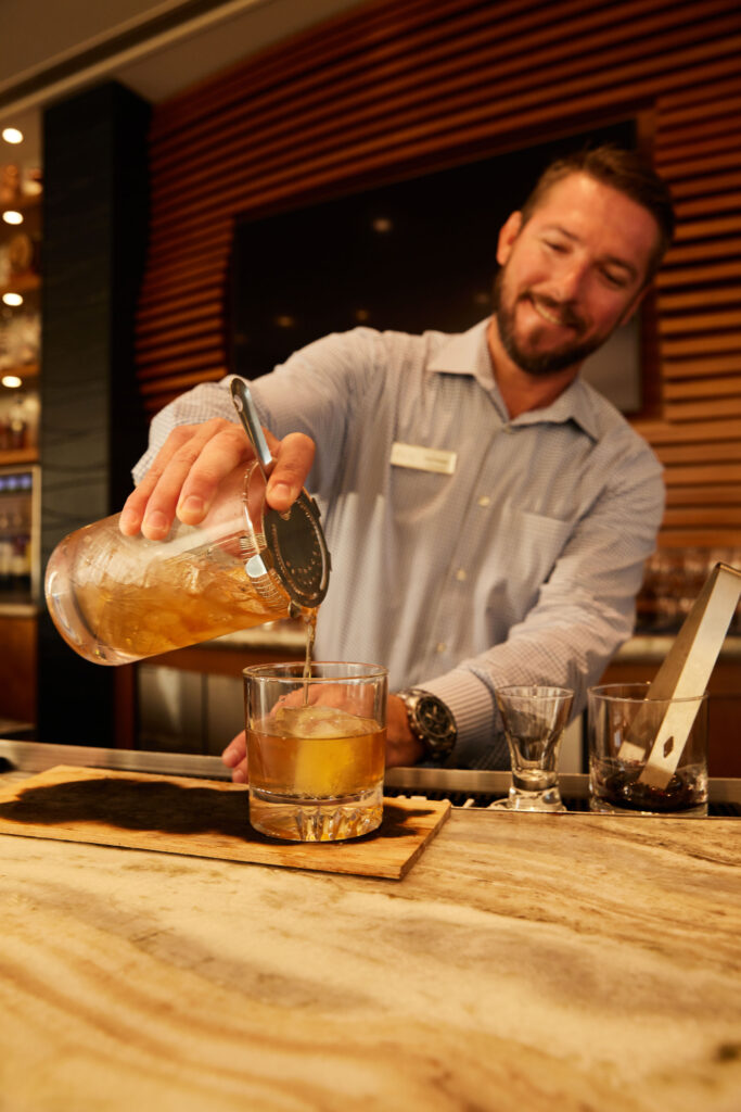“Regarding our cocktails, it’s a good mix of creative craft cocktails but then your classic craft cocktails as well. You’ll find about a 50/50 split with some classics like your Old Fashioned and French 75, but also an assortment of craft cocktails that change monthly. Whatever it is, we use the freshest ingredients to create something truly unique.”
