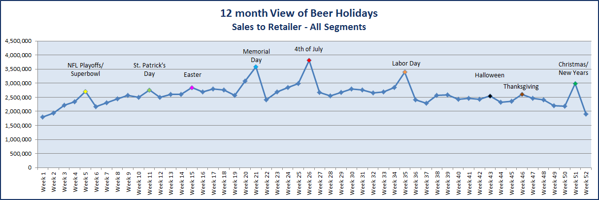 Fourth of July: Fireworks aren’t the only things that are hot during July. People love to cool off with a cold one on the Fourth, so make sure your inventory is ready for the onslaught of Independence Day revelers!